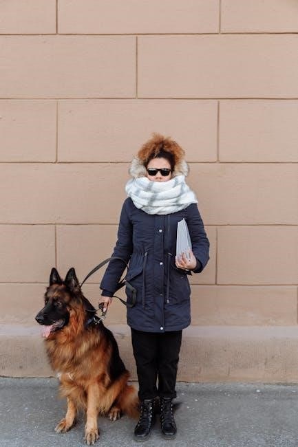 Public access training is a cornerstone of the Canine Development Center’s program, ensuring guide dogs are prepared for real-world environments․ Dogs are trained to navigate stores, restaurants, public transportation, and crowded spaces, learning to remain calm and focused amidst distractions․ Trainers use positive reinforcement techniques to reinforce good behavior, teaching dogs to avoid obstacles and respond reliably to commands․ This phase emphasizes the dog’s ability to work seamlessly in public settings, ensuring they can confidently guide their handlers in any situation․ The center’s state-of-the-art facilities and experienced trainers play a crucial role in this advanced training, equipping dogs with the skills needed to thrive in diverse environments․
