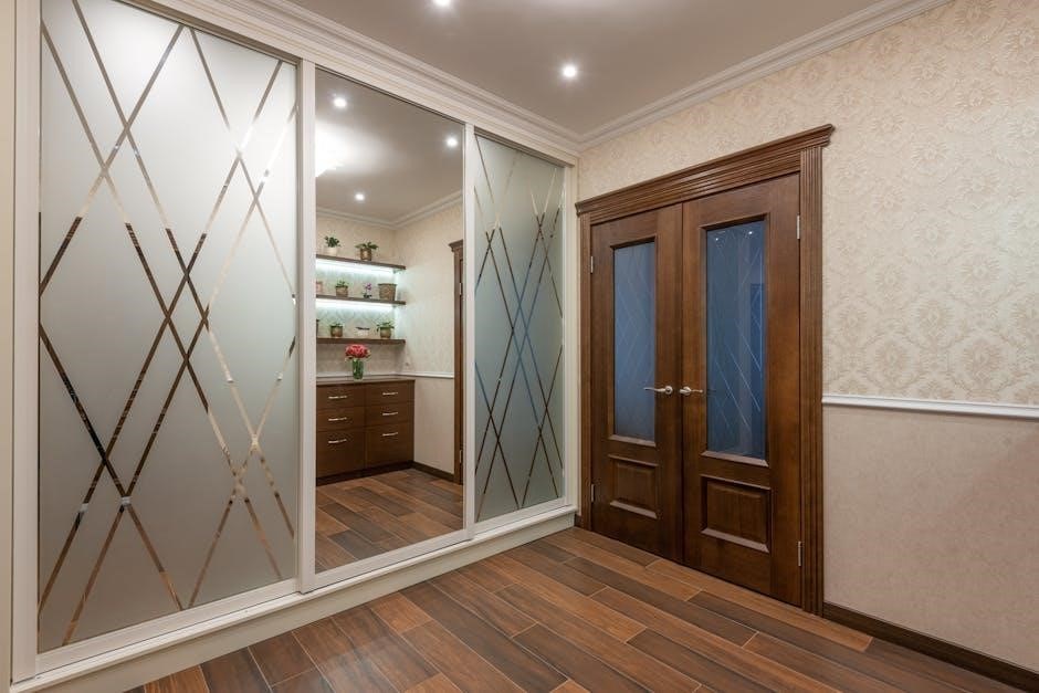 Adjust the door guides and track to ensure effortless gliding․ Lubricate the track with silicone spray to reduce friction․ Persistent issues may require fine-tuning the frame or door alignment․ Addressing these challenges ensures a functional and aesthetically pleasing pocket door;